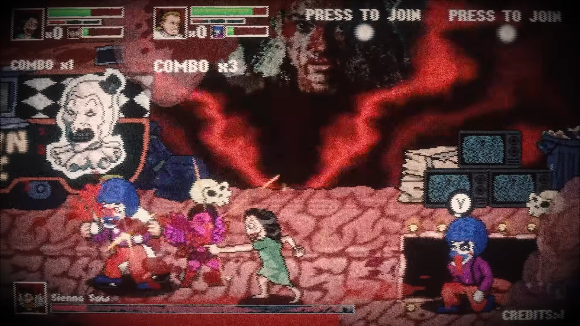 Многопользовательский битемап с элементами хоррора и в стилистике ретро-файтингов из 80-х годов, посвященный приключениям клоуна Арта – героя малобюджетных фильмов-ужасов. Как и в оригинальных кинолентах, главный злодей планирует погрузить мир в хаос и прибрать всю власть в свои кровавые лапы, однако ему противостоит группа отважных бойцов, готовых взять в руки мясницкий нож и восстановить справедливость. К сожалению, им противостоит не только кровавый клоун, но и стражи правопорядка.