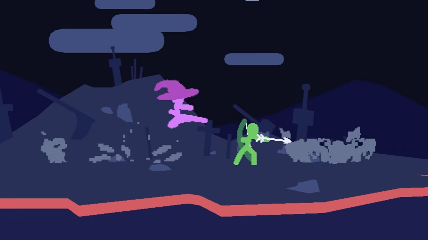 Многопользовательская смесь файтинга и платформера с динамичными боями на палках, отсылающие к временам зарождения интернета и флэш-играм той эпохи. Здесь нет каки-либо сложных боевых механик и продвинутых комбинаций ударов, а успех в драке зависит от способности совершать рывки в воздухе и одновременно лупить противников по голове. Чем четче выполняется цепочка ударов, тем меньше у противника шансов совершить рывок и провести эффективную контратаку.