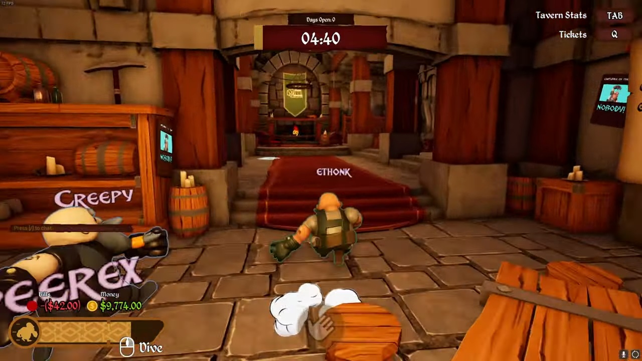 Совместный геймплей поддерживает восемь участников, готовящих вкусные кушания, варящих ароматные напитки и разносящих заказы по столикам. Заработанные золотые монеты можно вкладывать в модернизацию таверны, расширяя ассортимент продуктов питания, приобретая новую мебель, посуду, украшения и т. д. Повара смогут приобрести удобные плиты и блендеры для увеличения производительности.