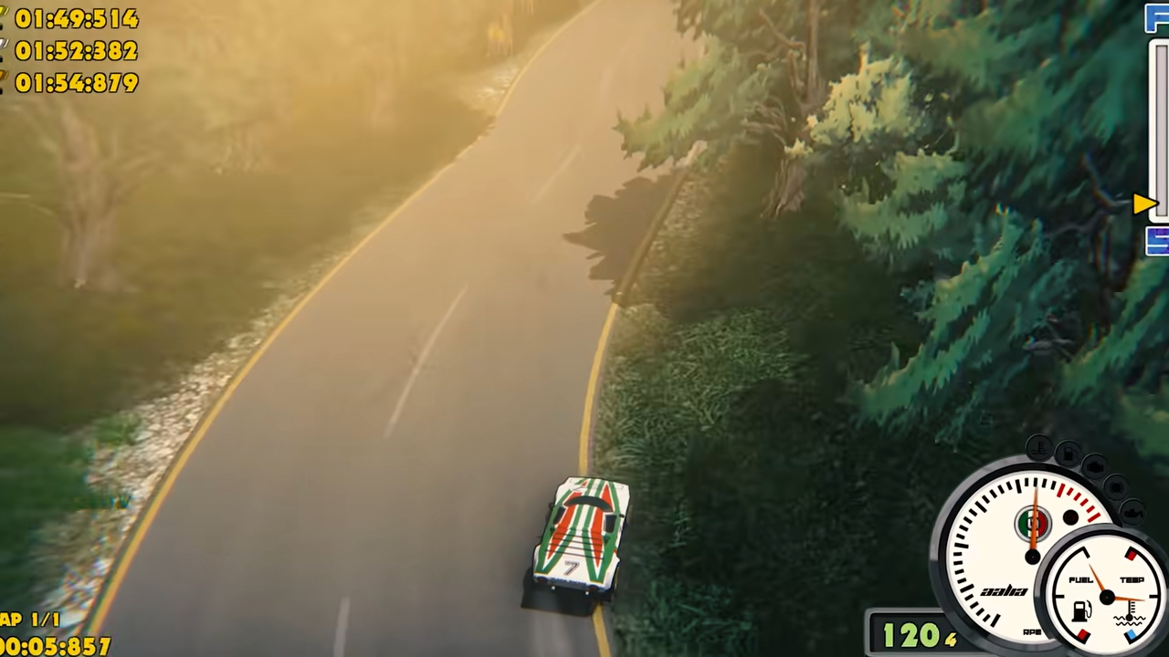 Аркадный симулятор раллийных автогонок без каких-либо серьезных имитаций физических систем, ведь действие игры развернется в эпохе, «где развлечение важнее реализма». Игрокам предлагают приобщиться к автомобильной культуре 60-х, 70-х и 80-х годов прошло века, когда мощные автомобили питались высокооктановым топливом и не страдали от экологических запретов, регулирующих степень нажатия на педаль газа. Авторы называют игру «любовным письмом» к аркадной классике, где на первое место выходит реакция и удовольствие от езды.
