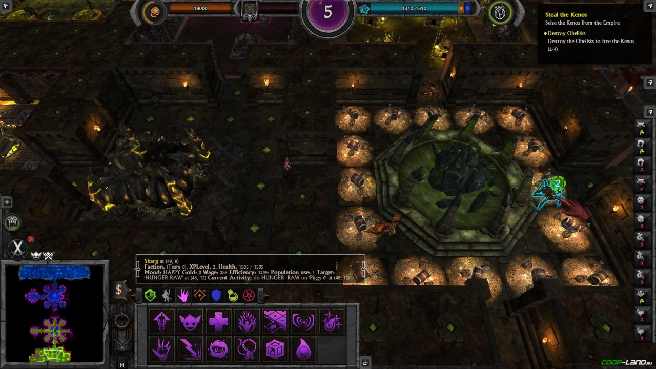 Предстоит обустраивать и развивать своё подземелье, чтобы привлекать новые виды разной нечисти, которые затем можно будет обрушить на голову противника. Также нужно не забывать, что обитатели подземелья любят комфорт, который придётся им обеспечить, дабы они вскоре не покинули ваши владения.