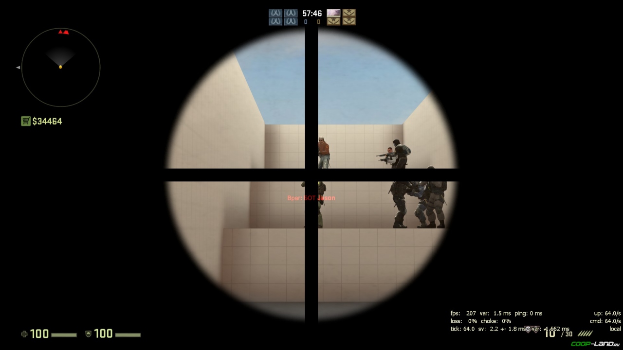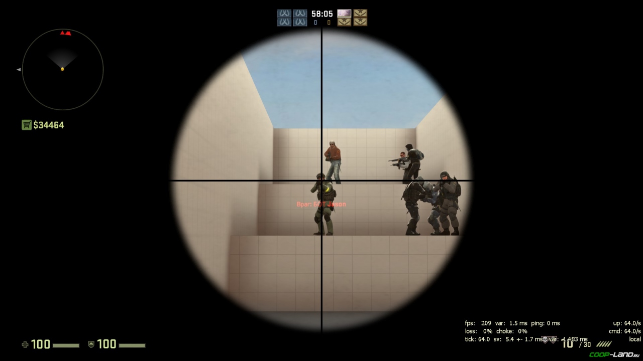 Не многие знают, но в начале этого года (а если быть точным, то 20 января) Valve добавила новую функцию, а именно изменение толщины прицела на снайперских винтовках. Ввиду того, что у многих игроков стоит высокое разрешение экрана (к примеру 1920х1080) перекрестие там было едва заметно, и некоторым игрокам попросту приходилось менять разрешение на более низкое (хотя лично я уже успел привыкнуть к стандартному, ну да не суть), чтобы отчетливее видеть перекрестие. Для того чтобы изменить толщину необходимо ввести консольную команду cl_crosshair_sniper_widthпробелЧИСЛО. Результат можно увидеть ниже: