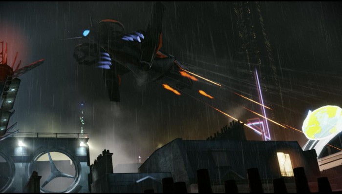 Сталкиваемся с крупным противником – живодером. Особое внимание уделяем уклонениям. Вскоре подоспеет подмога в виде обычных лепырей. Благодаря им, живодер становится практически неуязвимым, поэтому в первую очередь расправляемся с мелкими врагами. Когда живодер выйдет из состояния берсерка, продолжаем наносить удары по нему. Активируем кран, взбираемся по нему и перепрыгиваем на выступ. Дрон проломит стену, запрыгиваем на огромный экран и смещаемся направо. Прибыв в плавучий город, сворачиваем направо и спрыгиваем на перекладину. Движемся вдоль лавок и добираемся до лестницы. Поднявшись наверх, активируем мостики и переходим по ним. Сворачиваем направо, добираемся до металлической планки.