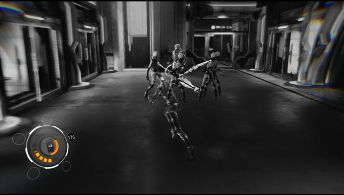 Используем лифт и отправляемся к Мыслительному кубу. Движемся вперед, уничтожая врагов. Применяем «Короткое замыкание» против роботов.