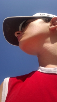 нет. Я в красной майке и в Монстерской кепочке.