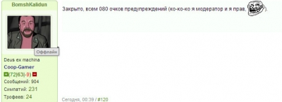 Закрыто, всем 080 очков предупреждений (ко-ко-ко я модератор и я прав,
