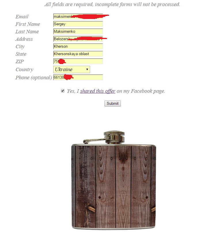 5 - Если всё сделаете правильно то через 3-6 недель (по крайней мере так обещают) вам пришлют замечательную флягу для вискарика)