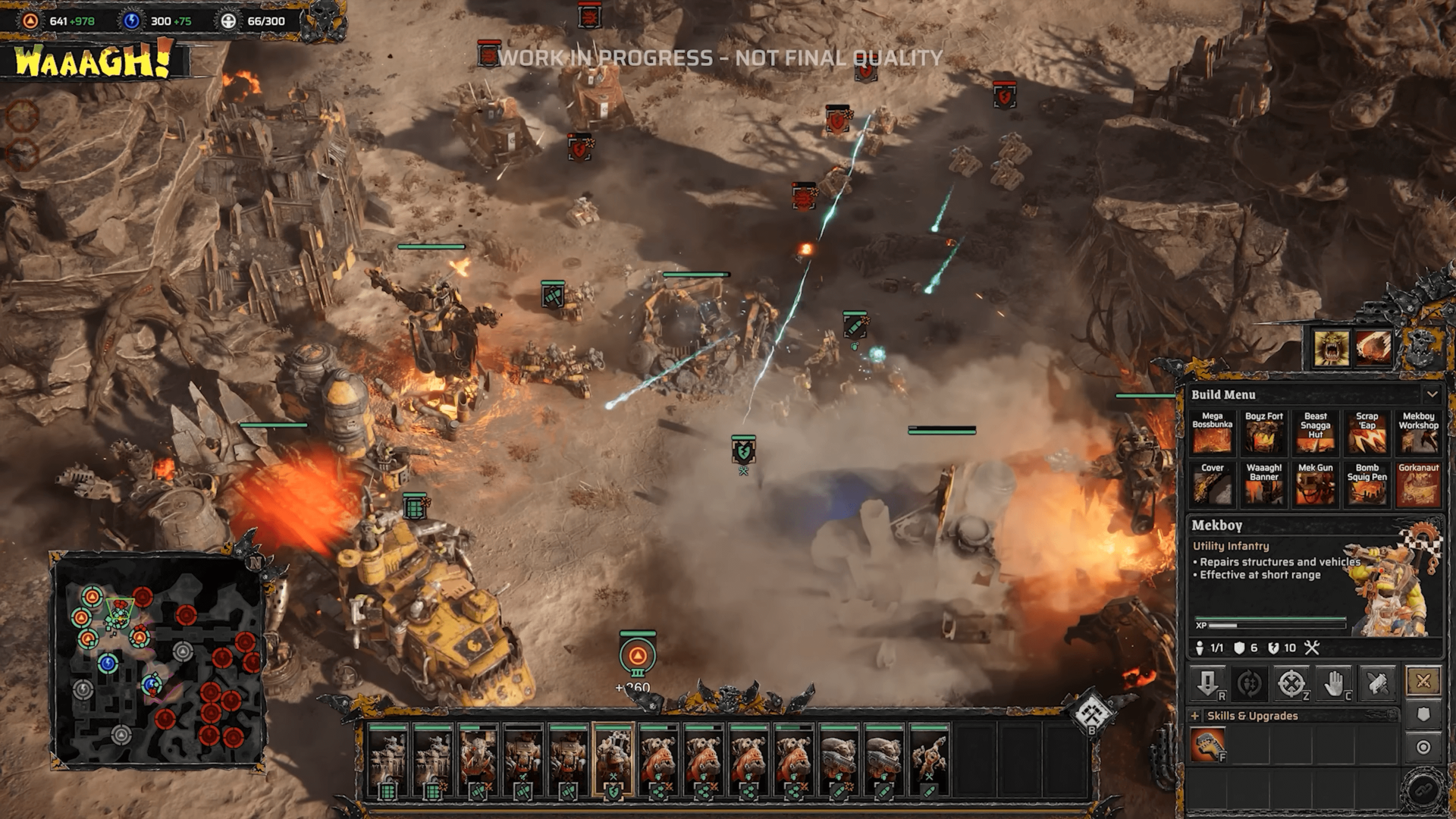 Всего заявлено 110 юнитов и зданий без рабочих и сервиторов. У каждой фракции будут уникальные механики: космодесант сбрасывает постройки с орбиты; адмехи выстраивают инфраструктуру на основе ноосферы; некроны переделывают местность под свои нужды; а орки это орки, зеленая орущая волна мародеров.