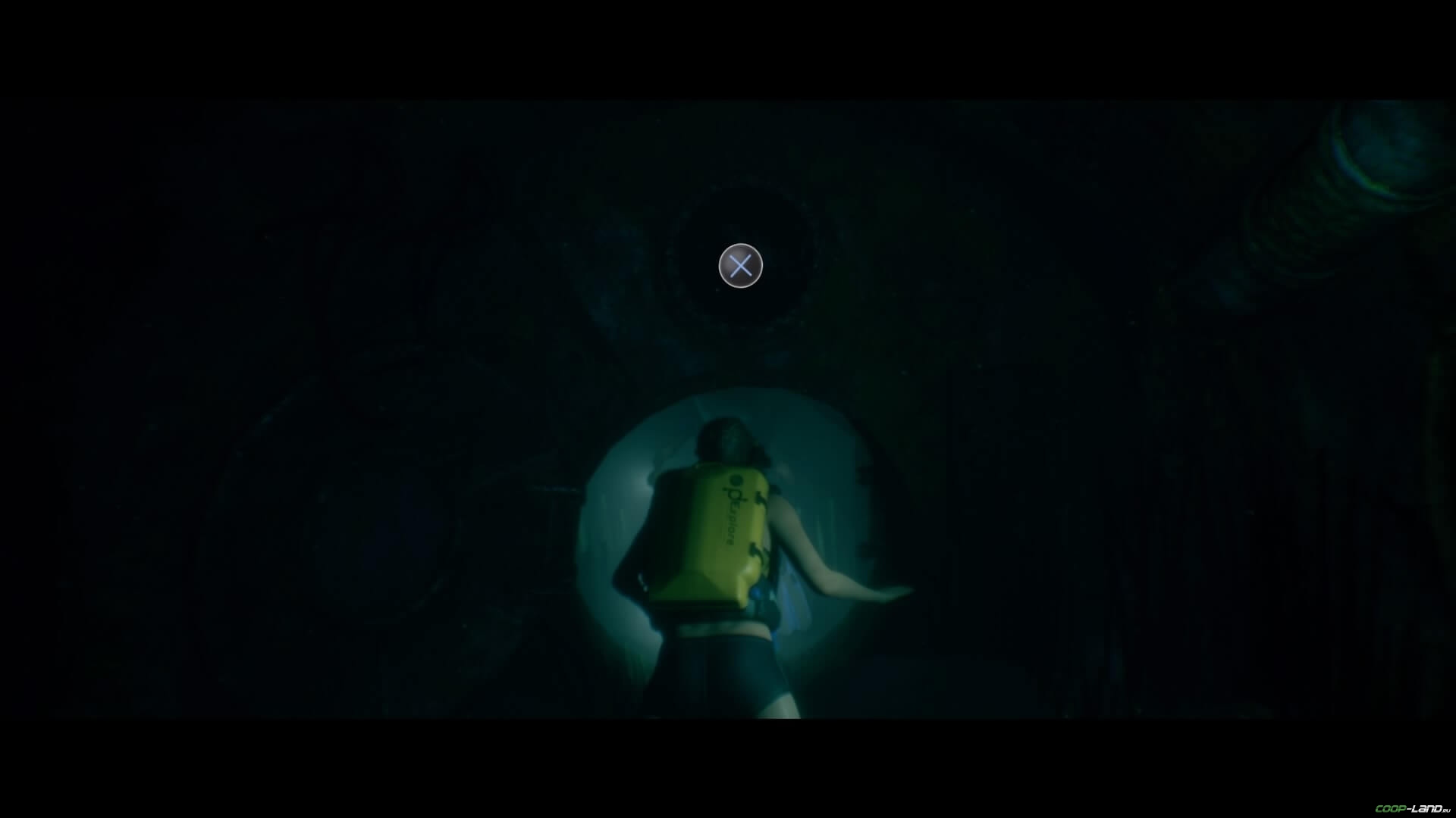 А после того как проплывёте через первый проём, притормозите и поднимите камеру вверх – там внутри ржавой трубы запрятан «Лётный план». Только вот перед тем, как сможете забрать секрет, нужно для начала снять ребризер: для этого воспользуйтесь опцией «Легкомыслие» и следом постарайтесь не испортить QTE-сценку.
