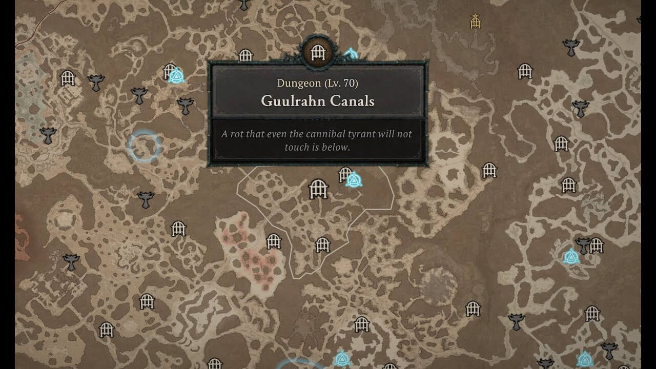 Подземелье расположено в Сухих степях и предлагает идеальные условия для быстрого фарма практически в самом начале игры. Найти это место не так уж и сложно, главное не перепутать его с трущобами Гуулрана, так как там вы быстро поймете, что такое орда монстров в Diablo 4, и после нескольких билетов на тот свет решите, что стоит поискать место для прокачки попроще.