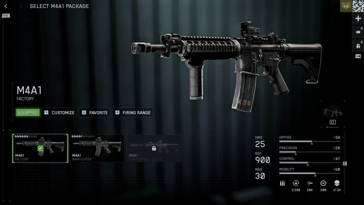 Карабин M4A1 объединяет 900 выстрелов в минуту с приличной дальнобойностью, что идеально для игроков, желающих получить производительность ПП в ближнем бою с универсальностью штурмовой винтовки.