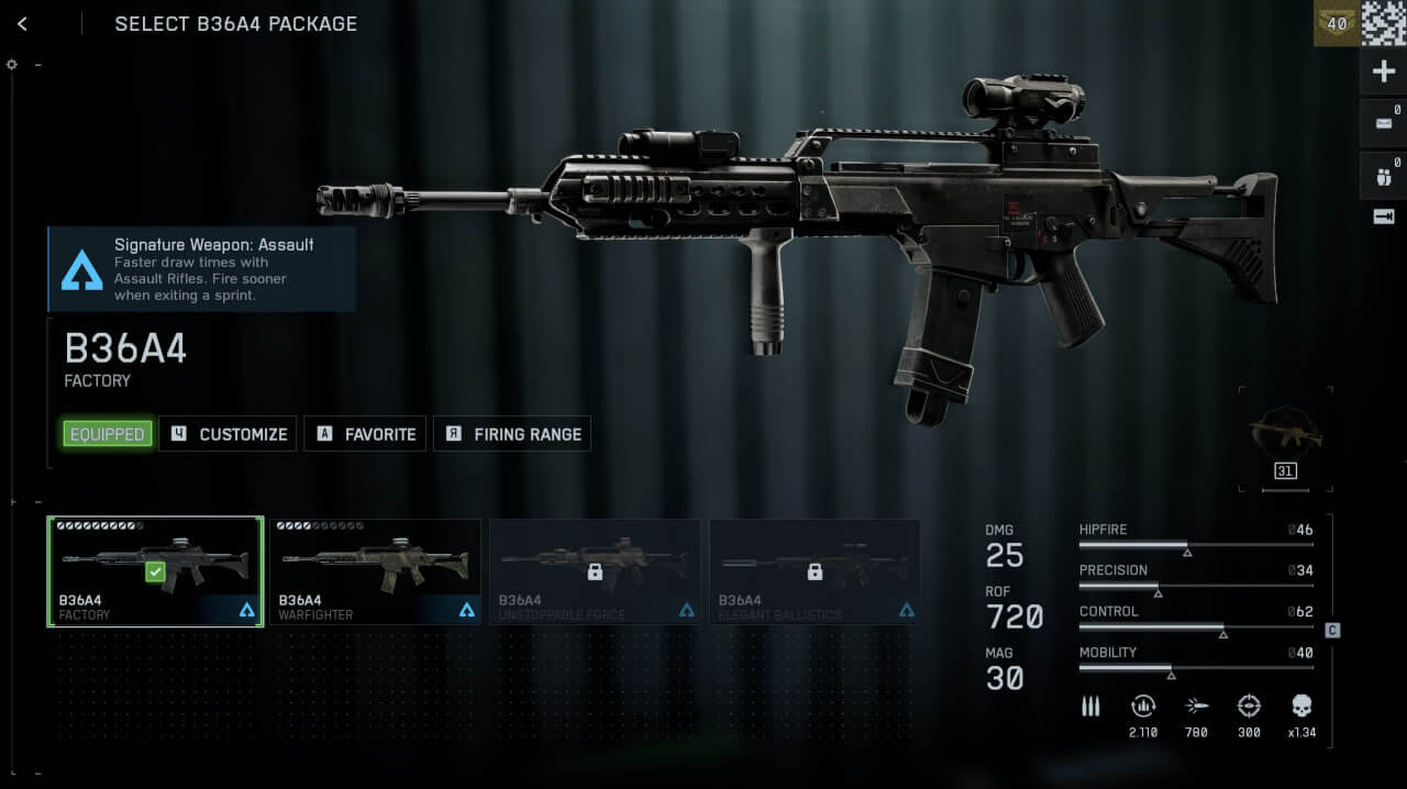 B36A4 представляет золотую середину с 720 выстрелами в минуту, приличным контролем и точностью, эта пушка компетентна везде, но нигде не исключительна.