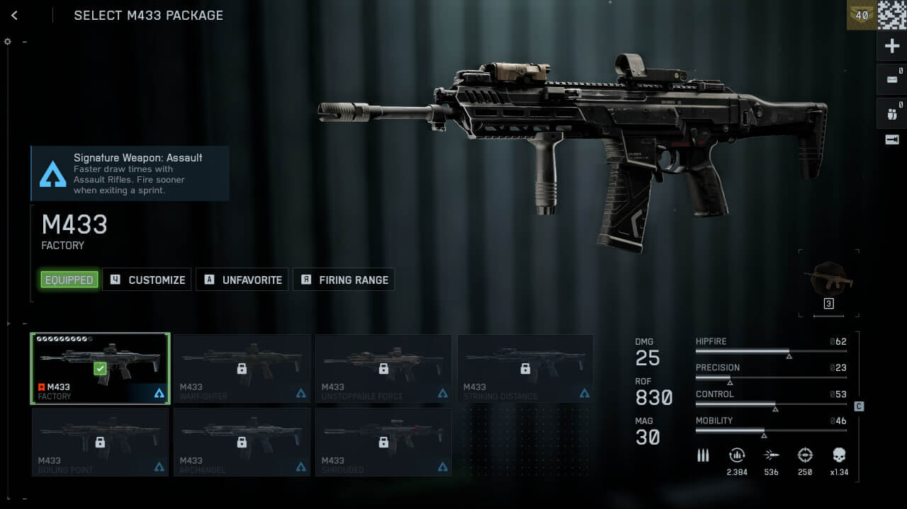 Обладая 830 выстрелами в минуту, подобно ПП, M433 размывает границы категорий, но испытывает трудности с точностью на больших расстояниях.