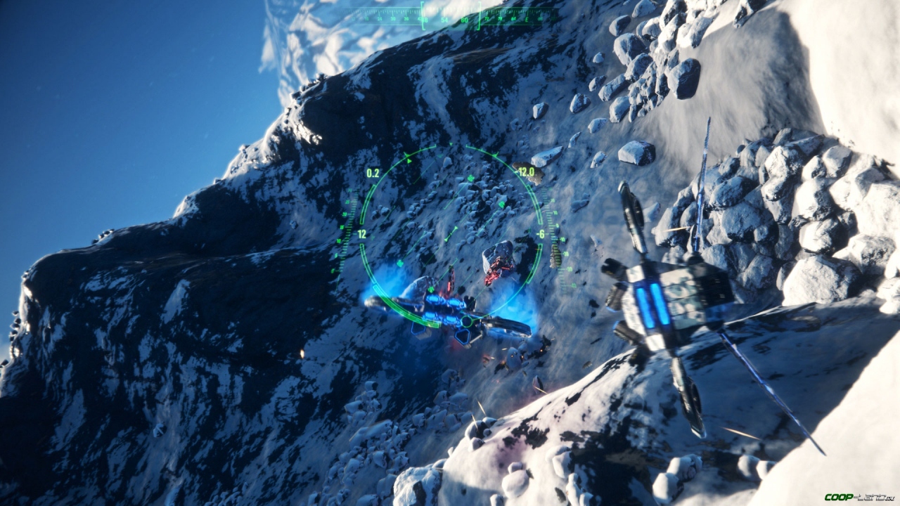Последняя – самая оригинальная особенность игры, и вот по какой причине: за каждый «вид» отвечает своя устанавливаемая на робота камера. Та, что обеспечивает показ от первого лица, находится непосредственно на нём, вторая – следует за ним (это микродрон, и он тоже считается «навесом»). Если её уничтожат, наблюдать за крылатой машиной из-за спины уже не получится – она будет смотреть на мир своим «глазом».
