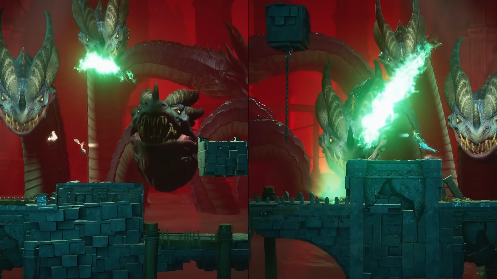 Совместное прохождение Split Fiction поддерживает двух игроков и является обязательным условием для получения положительных эмоций. Экран здесь всегда разделен на две части – слева играет героиня из научно-фантастического будущего, а справа развлекается поклонница средневекового фэнтези. Придется убегать от троллей, приручать драконов, уворачиваться от беспилотников и даже сражаться с кибернетическими ниндзя.