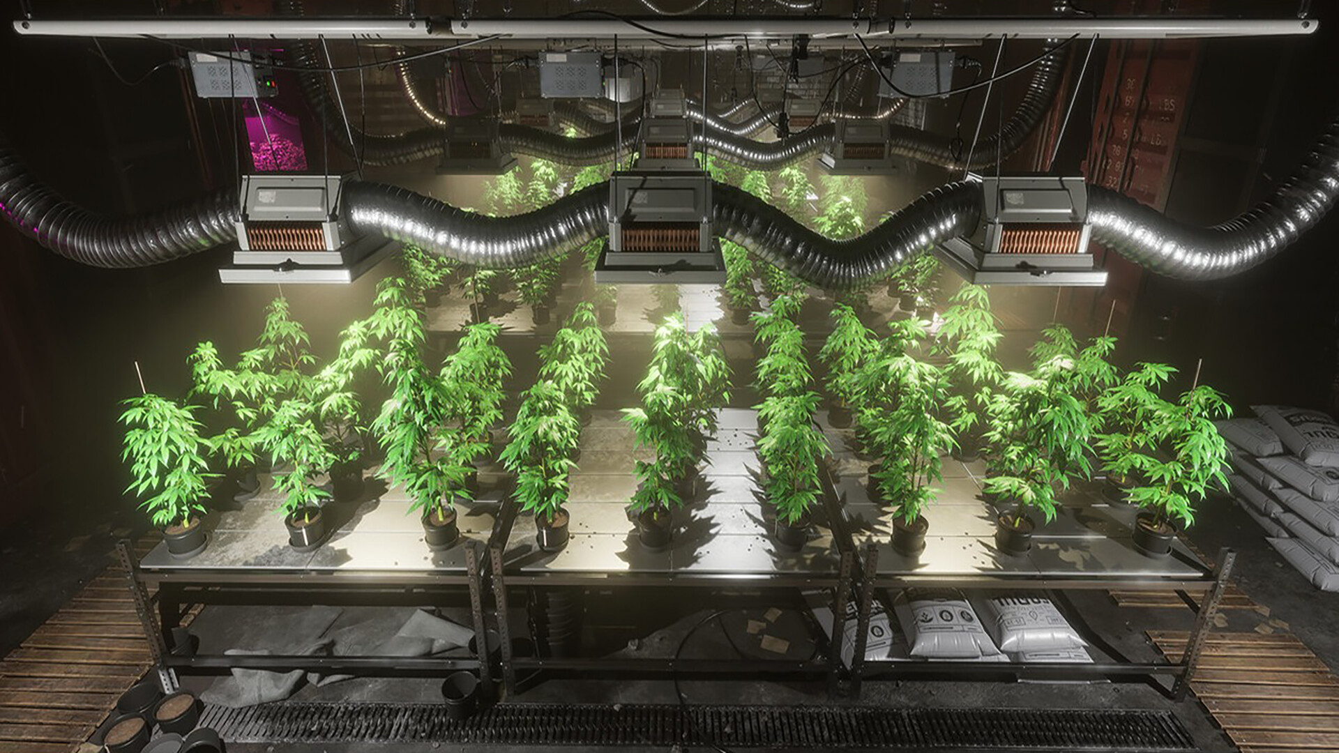 Игровой процесс начинается с самых низов – в начале игры у нас дешевый кнопочный телефон, пустые карманы и небольшой гараж, где и будет твориться волшебство. Первая выращенная и проданная партия даст средства для приобретения более качественного оборудования, модернизации производства и покупки средства передвижения, иначе дилерам придется пешком ходить по городу и искать страдающих ломкой клиентов.