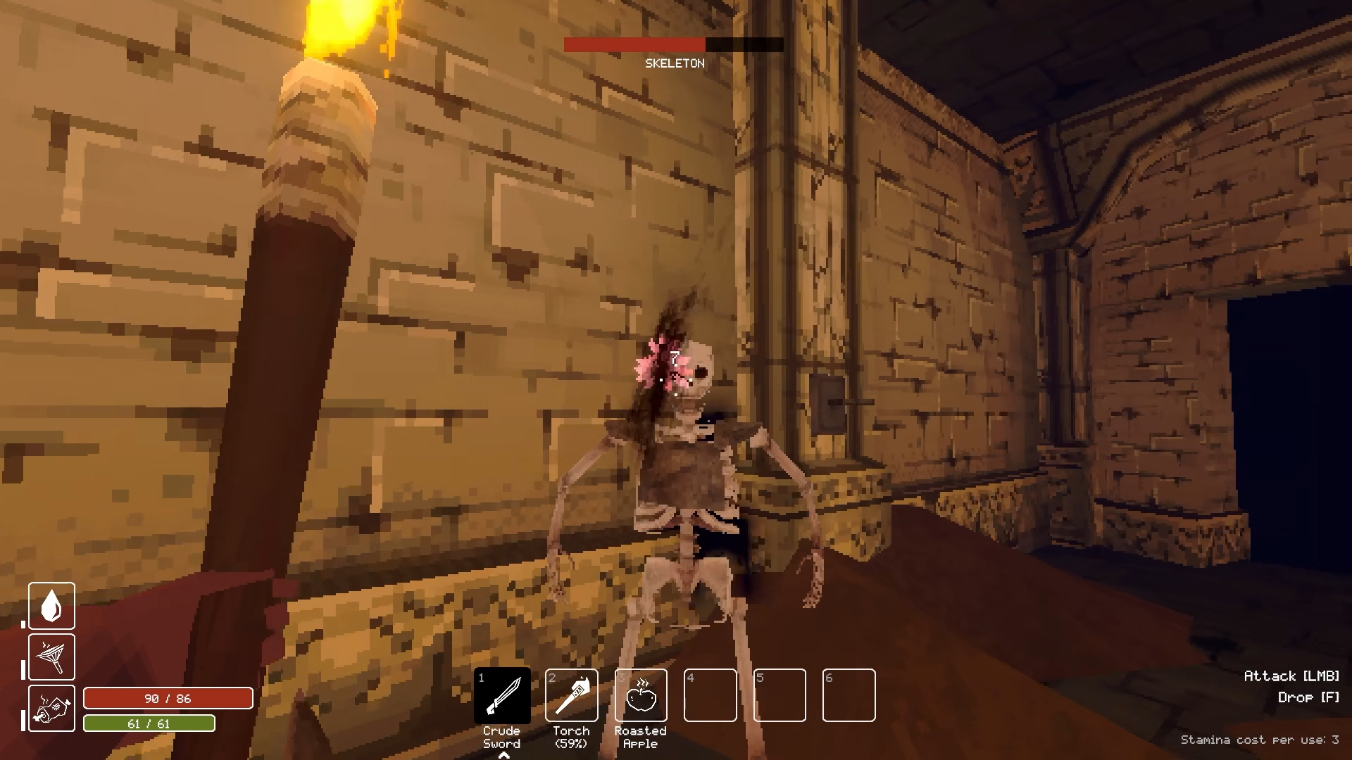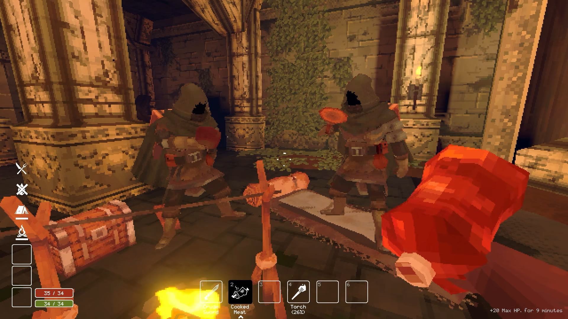 Рано или поздно, на пути исследователей появятся подземные монстры, победа над которыми возможна только после сытого обеда – к этому моменту у игроков уже должно быть хорошее оружие и броня. Разные типы противников потребуют обучения различных боевым навыкам, а игроки смогут оборудовать в лагере тренировочную зону. Противники здесь самые разнообразные: скелеты, летучие мыши, приведения и даже ожившие статуи.