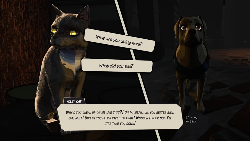 Особенность работы детективом заключается в том, что свидетели и преступники могут быть невероятно коварными – в этом случае обоим героям предстоит спасать свои жизни, выручая друг друга в сложных ситуациях. При этом мы не имеем право нарушать закон – собаке запрещено кусать людей без приказа детектива, а тот, в свою очередь, не должен арестовывать людей без стопроцентных доказательств их вины. Разработчики предупреждают о жестокости преступлений, не подходящих для юной аудитории.