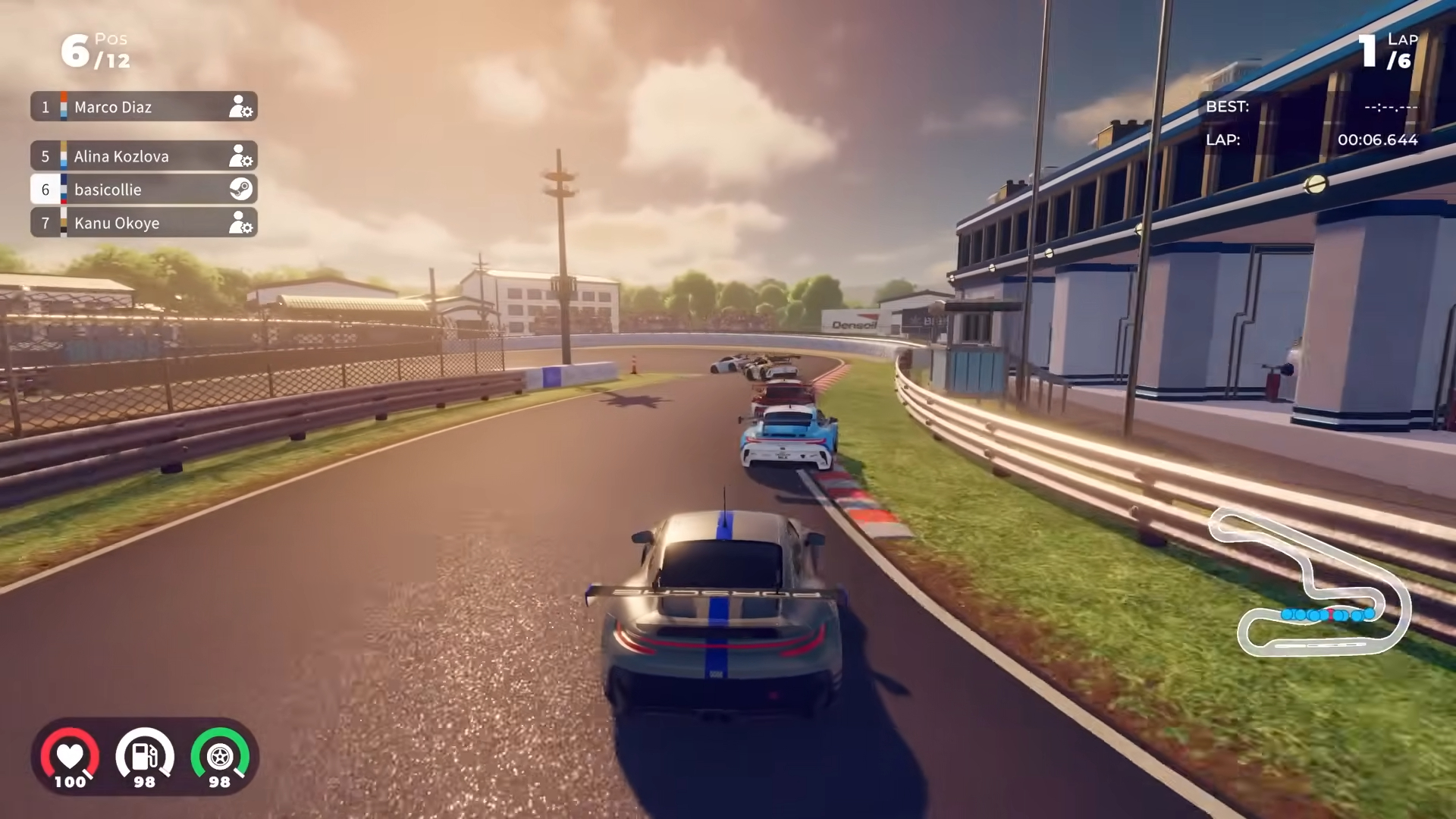 Любителей скорости ждет мультяшный стиль автомобилей и возможность создать собственную гоночную команду.