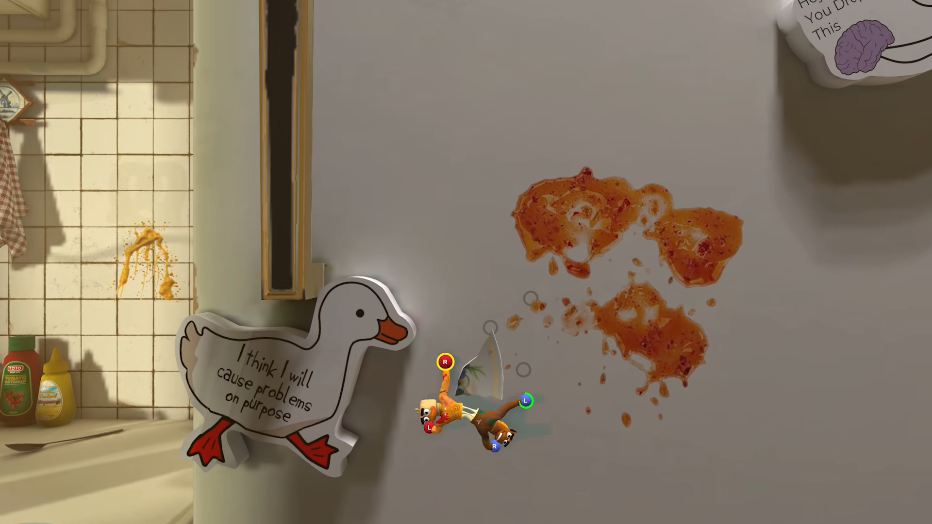 В основе игрового процесса лежит сложное управление двумя скованными героями, которые должны на ходу изобретать способы преодоления очередной ловушки. Нам необходимо провести их через пять комнат дома, подняться по лестнице и попасть на чердак, прохождение которого будет отличаться особой сложностью. Проблема не только в неуклюжести главных героев – на все внутриигровые предметы «натянута» капризная физика, поэтому любое неверное движение может привести к краху, а нашим бедолагам придется начинать все заново.