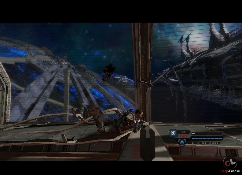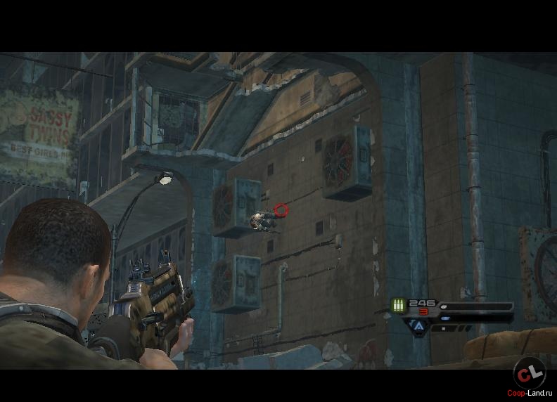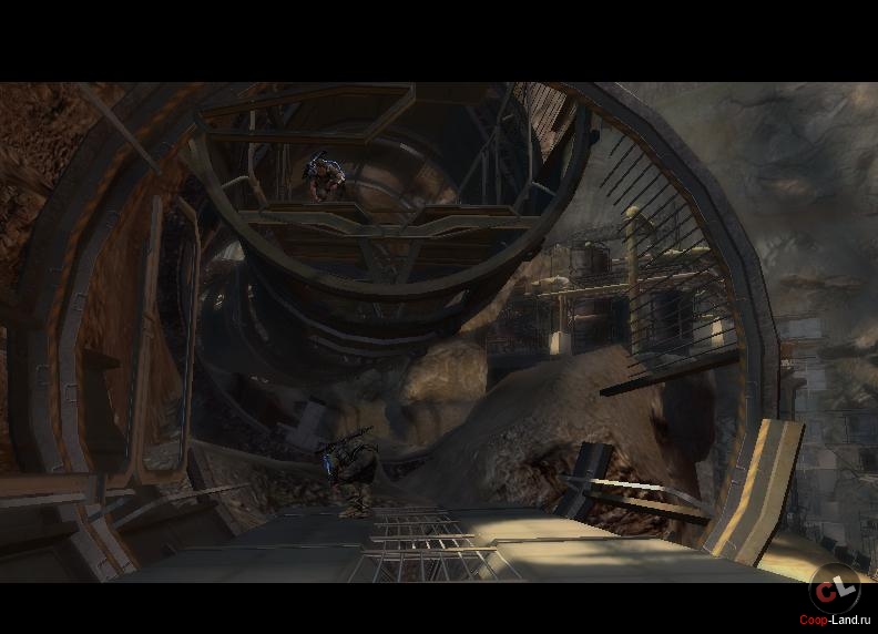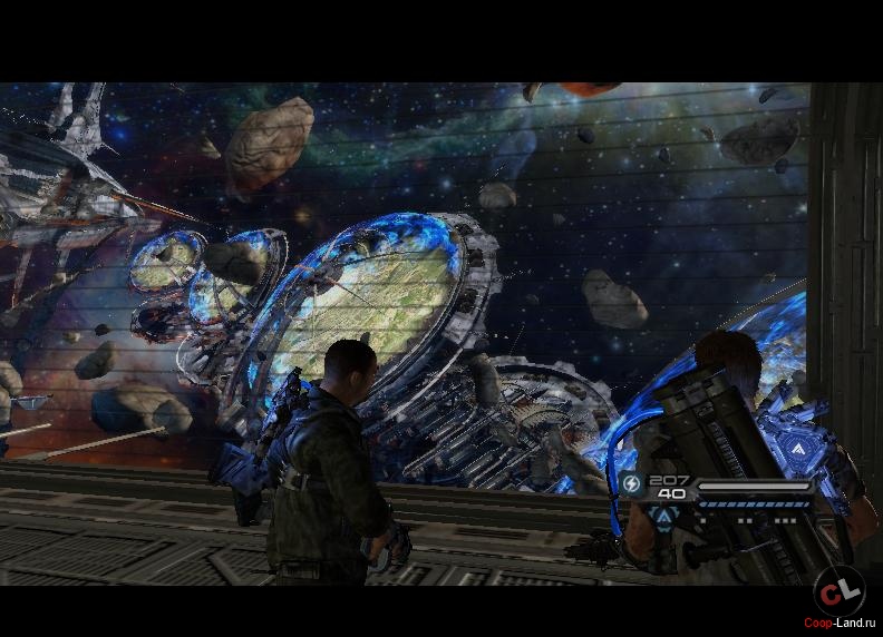 Собственно один из интересных аспектов игры. Тут есть два варианта: либо стреляемся, либо смотрим ролик, чуть проясняющий происходящее. Сам бой прямо как в Gears Of War - тактика, взаимопомощь, укрытия, разрушаемость... Вроде бы и так интересно, но добавили всякие гравитационные аномалии и гравлинки. Из-за первых мы перепрыгиваем на другую плоскость, иногда буквально не понимая, где верх, а где низ, где мы вообще. Из-за вторых поднимаем противников, кидаемся в них (низкая гравитация как никак), или наоборот, прижимаем к земле (высокая гравитация). Это та самая фишка игры, делающая ее гораздо интереснее! Также есть боссы, новое оружие и разветвление путей героев (например, один не успел допрыгнуть куда-то) добавляет всему этому некоторое разнообразие. Дабы не скучать по роликам: