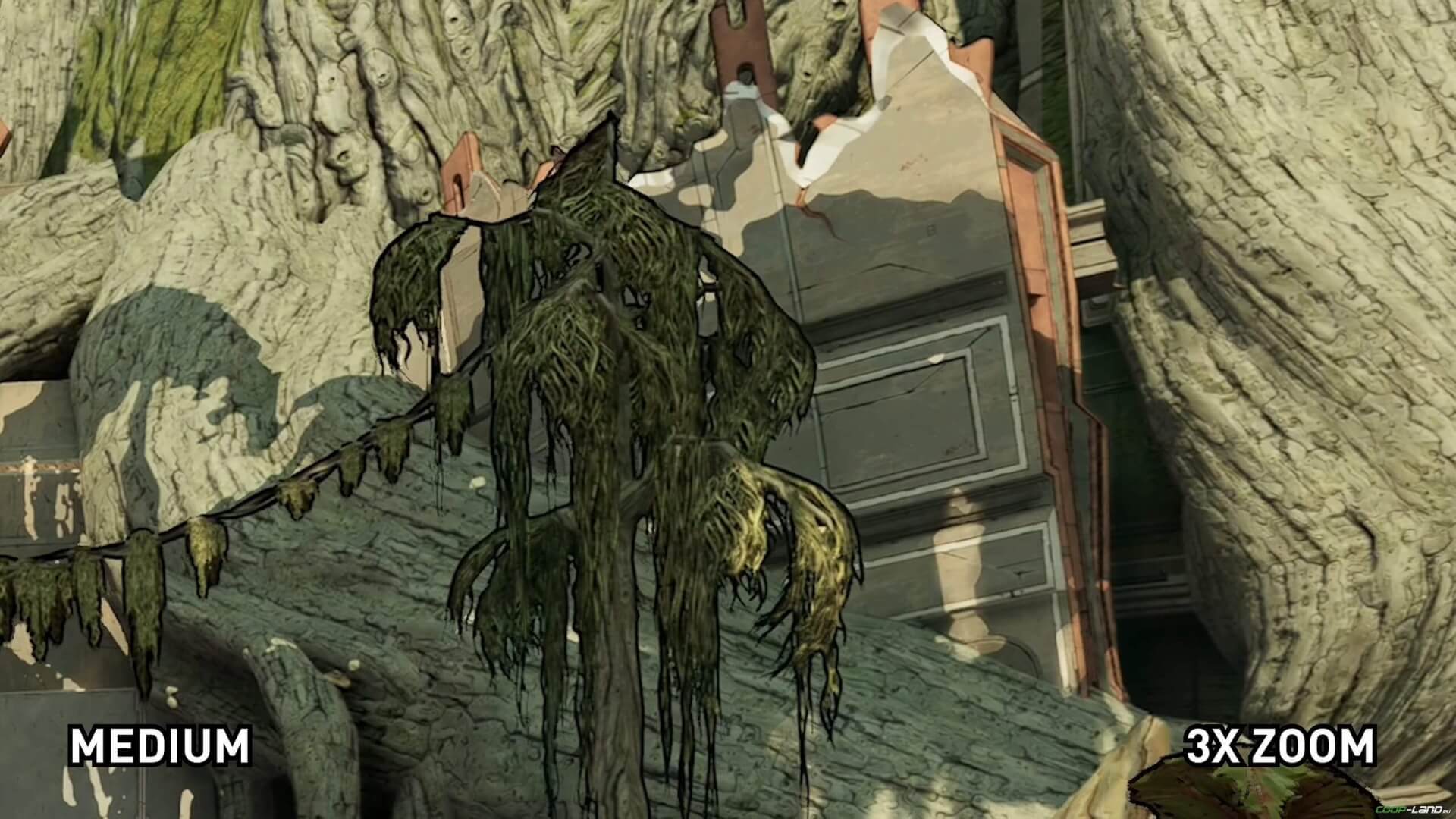 Как же мы любим русскую локализацию в Borderlands 3, над которой настолько внимательно и упорно трудились, что теперь косяки можно заметить на каждом шагу. На этот раз это касается опции «Качество пейзажей», которая не соответствует своему истинному названию и значению. И совсем необязательно владеть поверхностным английским, чтобы заметить ошибку, достаточно просто «поиграться» с настройками. Опция на самом деле отвечает за качество окружения, иначе бы она не меняла качество объектов на ближней и средней дистанции. На максимальных настройках качества вы заметите, как появились новые мелкие объекты, а на средних – образовались уродливые выпуклости. К тому же опция сильно нагружает компьютер.