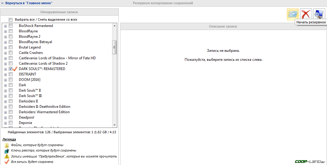 • Ещё одно достоинство именно этой программы состоит в том, что она самостоятельно сможет найти сохранения для каждого приложения, не доставляя лишних хлопот. Плюс ко всему можно выбрать не одну игру, а сразу несколько;