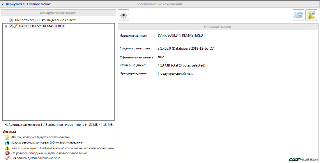 Как восстановить или вернуть сохранения в GameSave Manager?