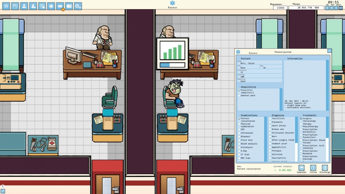 Что касается болезней, то авторы добавили в свое детище как всем знакомые, так и довольно странные. Также у игры приятная мультяшная стилистика, которая однозначно понравится фанатам больничных симуляторов. Контента тут хоть отбавляй, а игроки отмечают, что им нравится сам процесс развития госпиталя. Когда ты из небольшой больницы, которая способна обслужить до 10 человек, создаешь огромный медицинский центр, где одновременно лечат сотни пациентов. В общем, Hospitalize однозначно заслуживает внимания, так что если будет время, то обязательно ознакомьтесь.