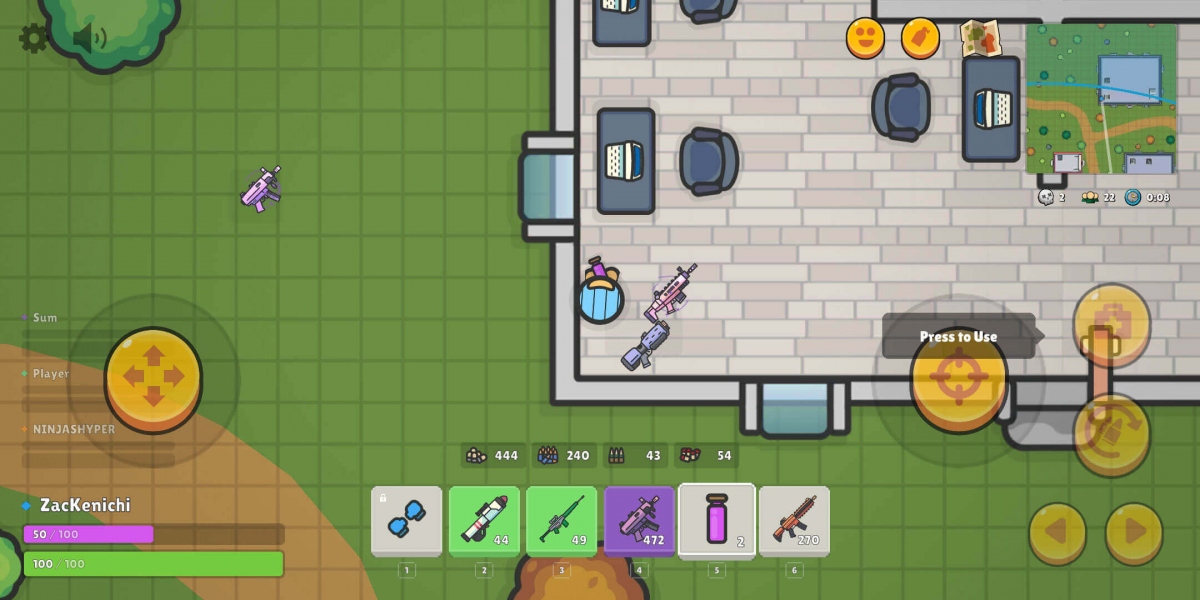 Помимо трехмерных королевских битв на мобильных устройствах можно встретить еще и 2D проекты. Одним из ярких примеров считается Bullet League – Battle Royale, которая уже несколько лет пользуется популярностью и привлекает к себе тысячи игроков по всему миру. Фишка проекта еще и в том, что он предлагает короткие игровые сессии до 3-х минут. То есть у вас всегда будет время сыграть одну катку и продолжить заниматься своими делами.
