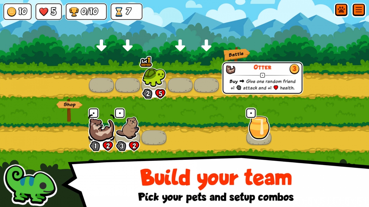 Основной геймплей строится вокруг магазина, где мы: покупаем животных и предметы — усиливаем отряд и подбираем тактику.