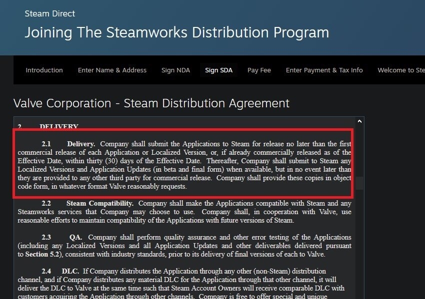 Теперь Valve требует от всех разработчиков, которые создали страницу для своей игры в Steam, выпустить игру в течении 30 дней после релиза на остальных платформах. Очевидно, новый пункт соглашения помешает Epic Games выцеплять эксклюзивы из болота Габена.