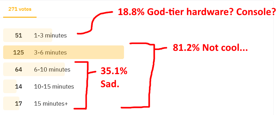 Итак, у человека есть система с процессором AMD FX-8350 (8 ядер, однако), видеокартой GeForce GTX 1070, двумя планками памяти на 8 гигабайта типа DDR3 с частотой 1337 МГц, а там всунут накопитель SATA SSD A400 в форм-факторе 2,5" на 120 гигабайт. На загрузку GTA Online у такого монстра из прошлого десятилетия уходит в среднем около 360 секунд. Замер человек проводил от появления лого до возможности перейти к игровому процессу.