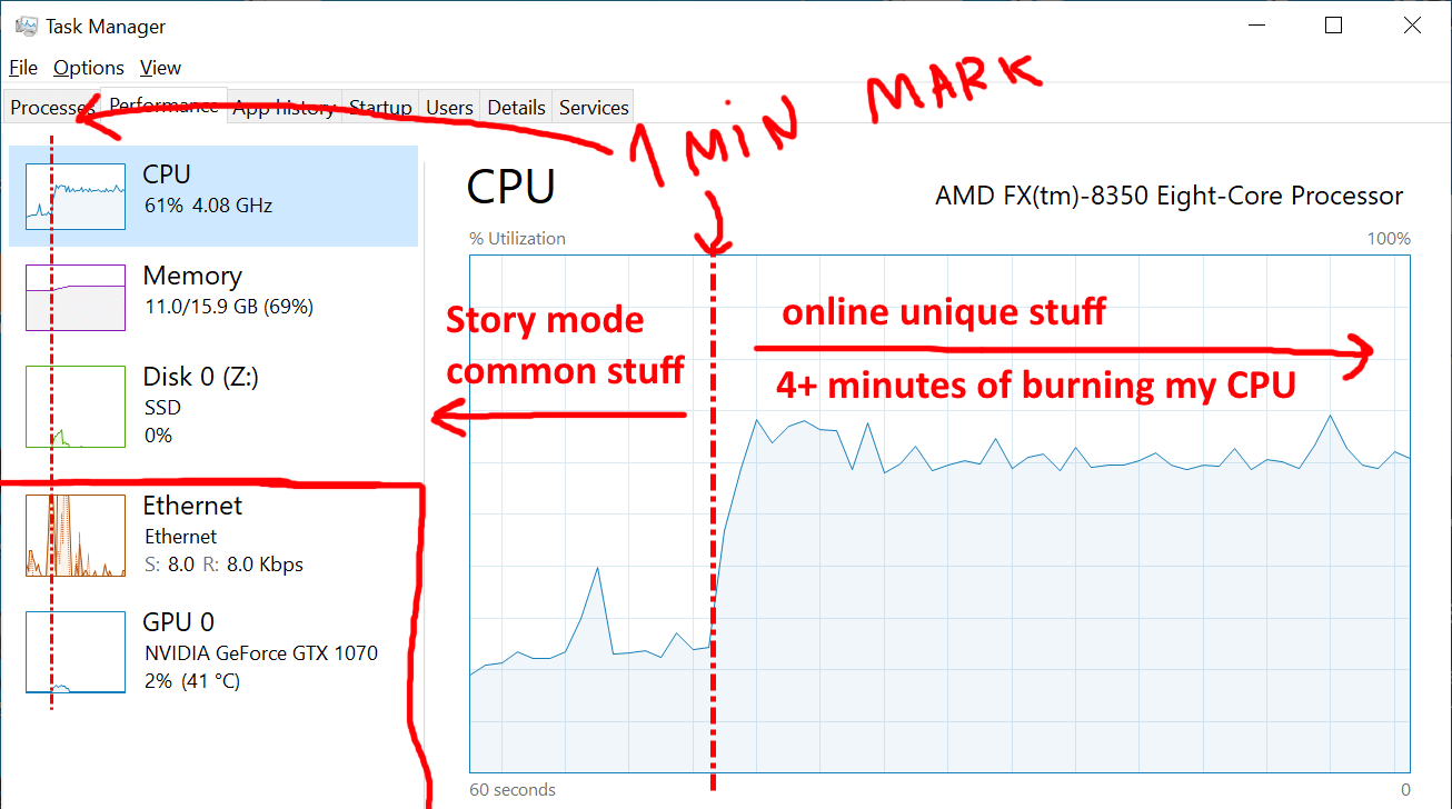 Опросив фанатов, T0ST определил, что дело нечисто – даже мощное железо грузит режим до 2 минут. Он расчехлил инженерные навыки и изучил поведение GTA Online. Оказалось, что игра полностью нагружает только одно из ядер процессора, игнорируя диск, видеокарту, оперативку и все остальное.