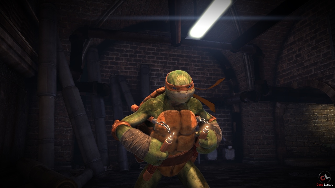 Если хочется поближе познакомиться с героями и рассмотреть их со стороны, то обратите внимание на скриншоты ниже. Рафаэль там словно всматривается в душу... Но это мало кого волнует, ведь вся надежда на игровой процесс. Трудно вспомнить хоть один кооперативный файтинг за последнее время.