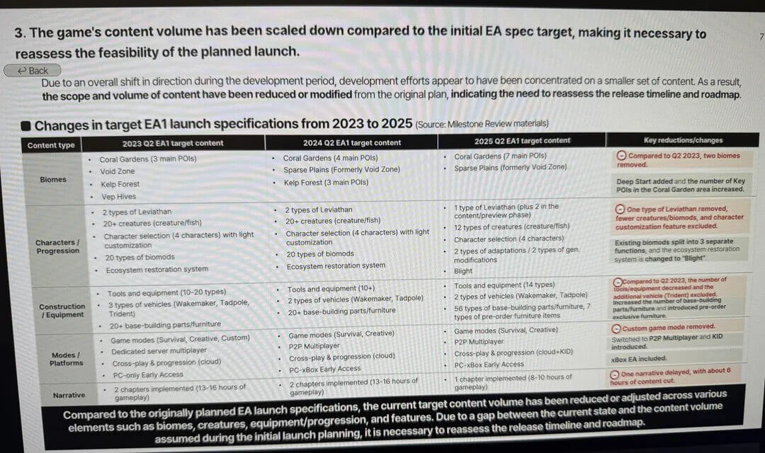 Хороший контент для бесплатной демки, а не для платной игры в состоянии раннего доступа. Поэтому Krafton запросила Unknown Worlds добавить вдвое больше контента и расписала, что конкретно должно быть в игре – у нее ведь на руках был контент-план от 2023 года. Вот он