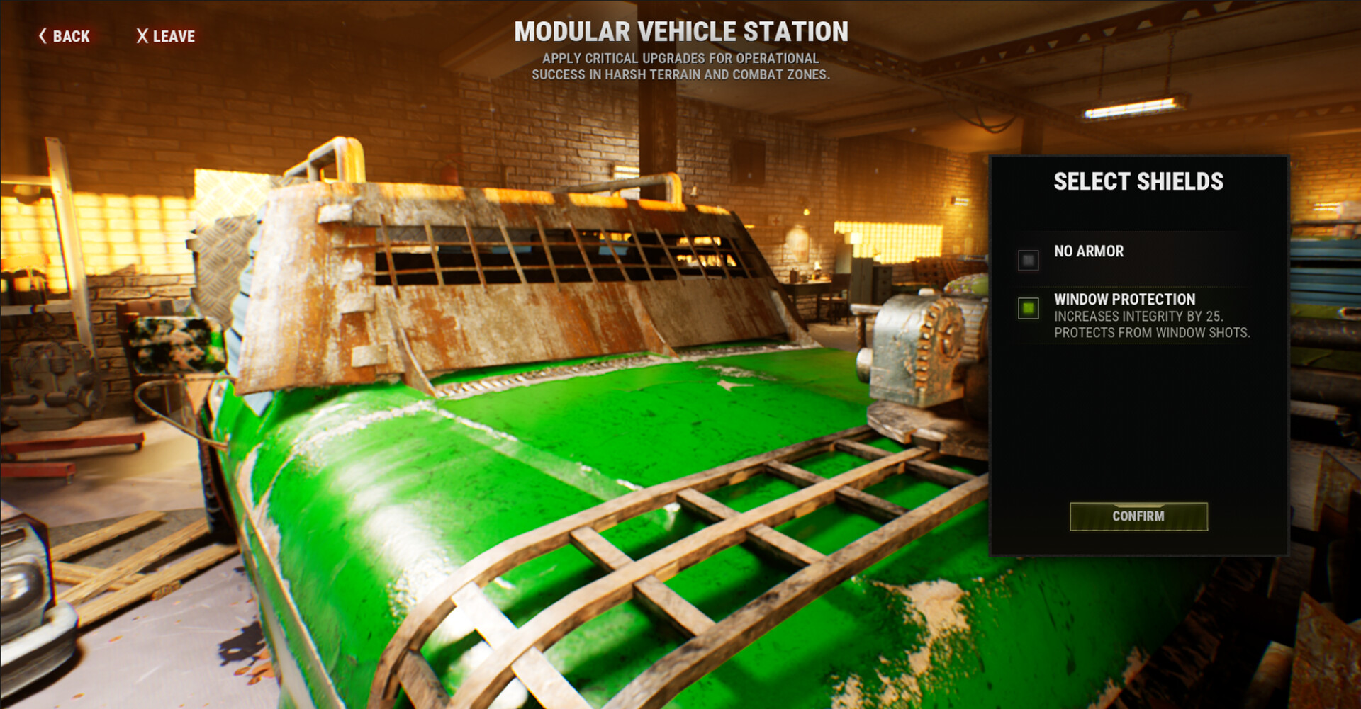 Титульной особенностью игры станет процесс создания и модифицирования основанных на физике внедорожников, которые должны выдержать езду по пересеченной местности и огневое воздействие. Авторы называют это мета-прогрессом – в начале у нас будет маленький гараж и примитивный багги, но затем мы получим мощности для повышения проходимости, скорости и грузоподъемности, а также сможем улучшать двигатели и шины, добавлять броню и увеличивать вместимость багажника, устанавливать на корпус оружие.