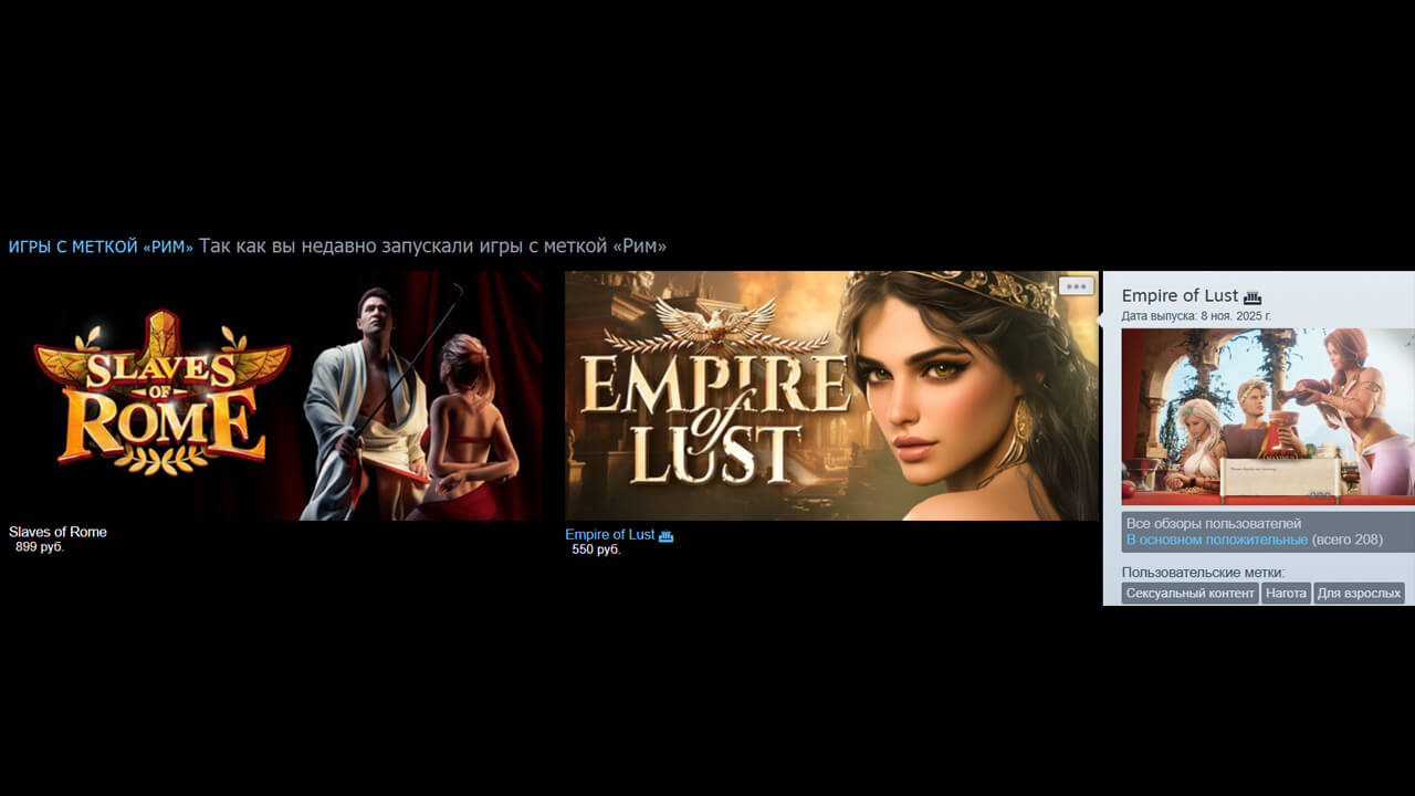 Разумеется, никто в своем уме не покупает такие игры. Даже если покупает, то скрывает и не пишет отзывы. Это мусорные страницы, в сообществах которых сидят гунеры, который кормят друг друга соотвествующим контентом. Это теперь своеобразная площадка для аdult-креаторов, где конверсия невероятно мала. И все это превращает Steam во второсортный сайт с порнографическими картинками, борьбу с которыми сервис начал летом 2025 года. И, видимо, проиграл.