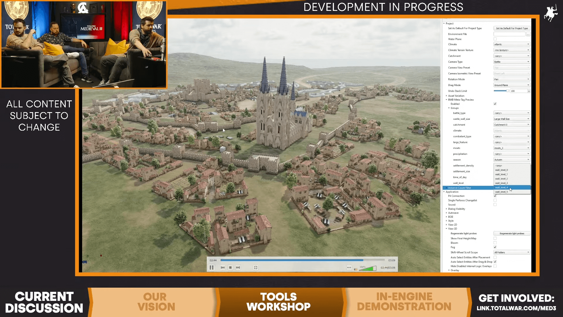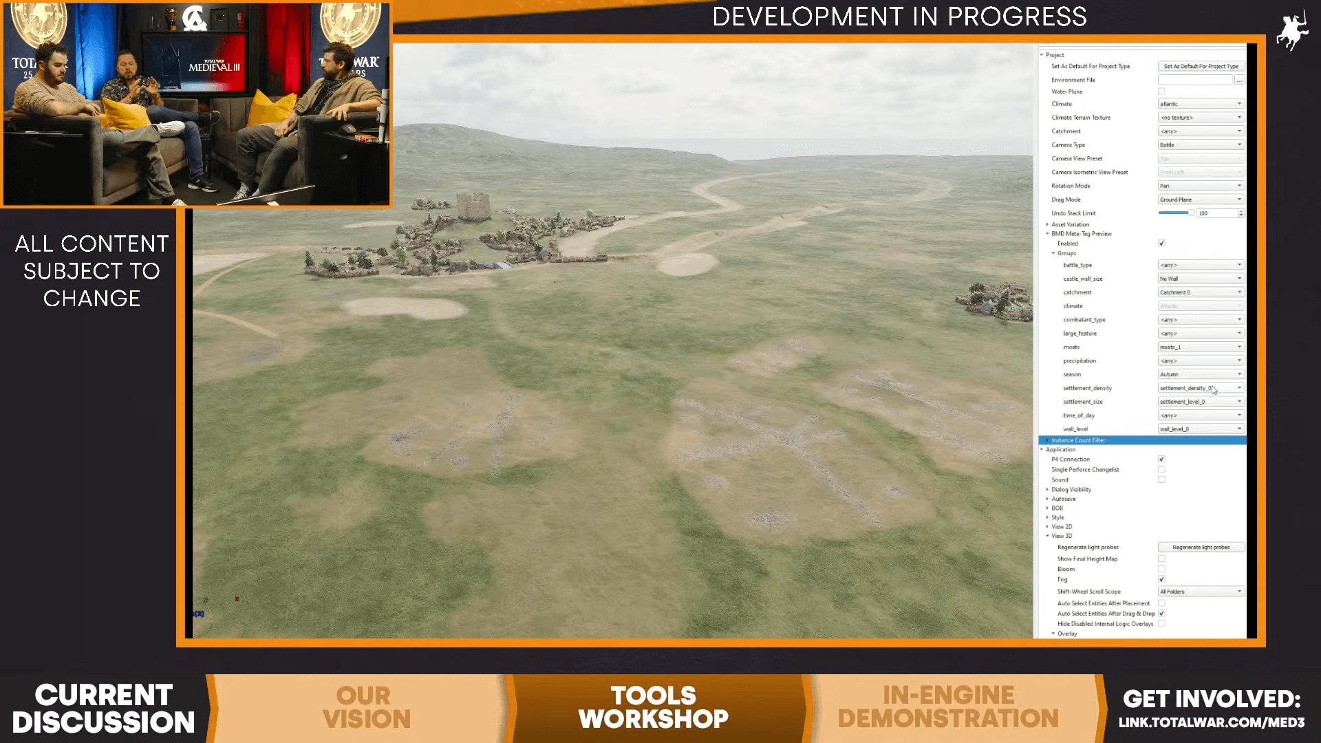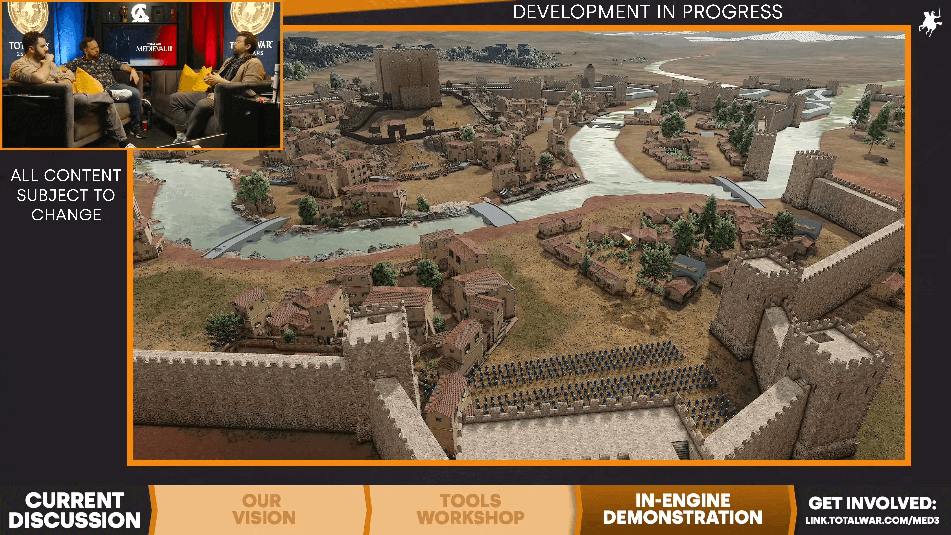 Также попытка отказа от искусственно пустых пространств явно провалилась. На трансляции заметно наличие пустых пространств, не свойственных плотной средневековой городской застройке. Да и некоторые постройки расположены без какой-либо логики. Все это Creative Assembly наверняка исправит, когда вплотную займется градостроительством.