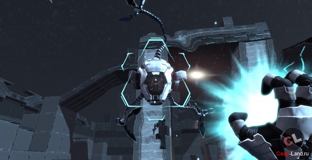 Перемещаться по миру здесь можно совершенно спокойно. Первоначально перед игроком ставится задача построить базу. Строить мы можем как угодно, лишь бы суметь потом защититься от нападающих врагов, а также защитить что-то вроде аппарата, нужного для колонизации планеты. Понятно, местной фауне это не всегда нравится, обитатели начинают активно пытаться уничтожить засоряющую их планету штуку, наша же задача, как я уже говорил, ее защитить. Враги наши похожи на роботов с клешнями, будут и другие.
