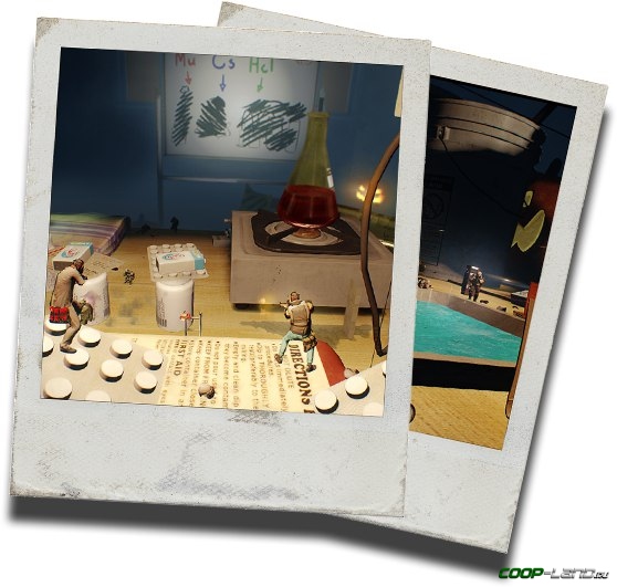 Представьте такую ситуацию: вы с друзьями приехали с удачного ограбления и завалились спать. Просыпаетесь – о, нет, пресвятые Сины, ваш рост уменьшился в несколько раз! Да-да, теперь грабителям придётся сражаться с такими же крошечными полицейскими в лаборатории, бегая меж карандашей, используя скрепки как укрытия и ползая под листами бумаги в новом ограблении «Rats Lab».