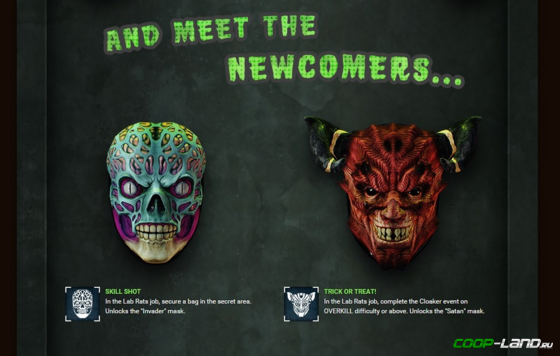 К этим четырём маскам добавятся две новые: Инвейдер и Сатана, а также два достижения, после выполнения которых и открываются маски. Кстати, не стоит забывать и про новые раскраски для масочек. Боже, ещё более бездарные раскраски будут ждать меня в лобби… За что…