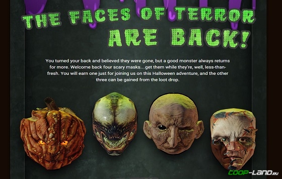 Те, кому понравился «Кошмар в Убежище», могут не расстраиваться – эта миссия тоже будет добавлена, и вы сможете снова набить лицо… нет, не лицо… задницу безголовому Титандозеру, а также выбить особые хеллоуинские маски. Именно так, старые маски: Веноморф, Ведьма, Король Тыкв и Фрэнк – вернутся, что позволит игрокам выполнить ежегодные достижения, если они не были выполнены в прошлом году.
